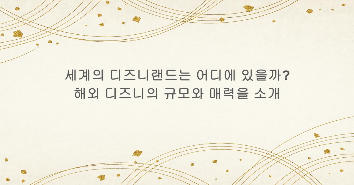 세계의 디즈니랜드는 어디에 있을까? 해외 디즈니의 규모와 매력을 소개